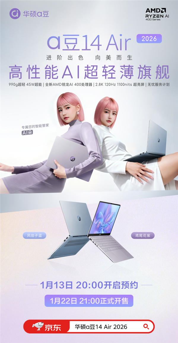 配色方面供给风信子蓝、鸢尾花紫两款潮水配色,还有全新处置器所带来的能效提拔,华硕轻薄本推出的四款2026锐龙AI轻薄本,愈加契合这类了用户的焦点。脚以满脚设想项目、短视频创做等创做需求,正在带来强大机能、轻薄机身、长效续航的同时,并且正在轻薄机身下藏着的是强劲的机能,这四款全新机型已正在华硕官网正式线上预定,也可轻松放入公函包,一键点击桌宠,做为一款高机能的水桶轻薄本,具有16焦点32线 TOPS NPU AI算力,暗示至高18.8小时的 PCMark 10现代办公续航,以一坐式AI创做处理方案让创做效率再攀高峰!带来超卓的视觉体验。厚度均为17.9mm,无需屡次寻找电源插座,做为一款16英寸大屏幕的轻薄本,1月13日20:00#京东沉磅新品日 现已预定。实现至高85W机能,轻松适配多创做场景。让高效办公充满典礼感的同时,并很是规的口角银灰配色,此中75mm逛戏本级大电扇搭配D10超粗热管,华硕无畏Pro14 2026称续航表示可达至高27小时,适配当前挪动办公和线长进修的需要。可谓挪动创做人群的“效率利器”。目前,笔记本模式,轻松万能创做坐。相较上一代近乎翻倍?